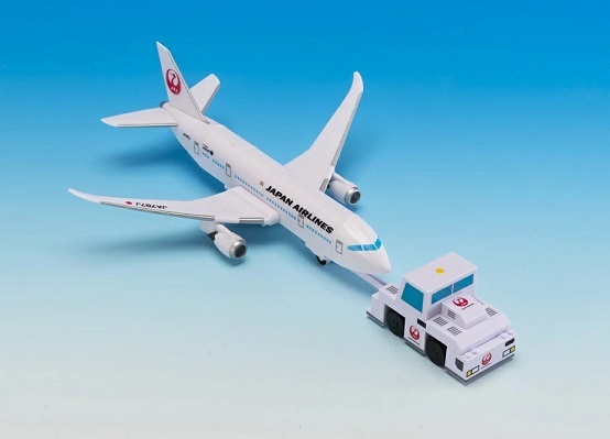 税込:770円 ◆飛行機サイズ:全長約70ミリ ◆パッケージサイズ:170×100×75ミリ ◆製品素材 飛行機本体:ABS樹脂 後輪:ABS樹脂、合成ゴム ◆日本航空承認済み ◆玩具安全基準合格品 ●前方に強くスライドさせてから手をはなすと、ダッシュします。 最新鋭機787とトリプルセブンのセットです。 |